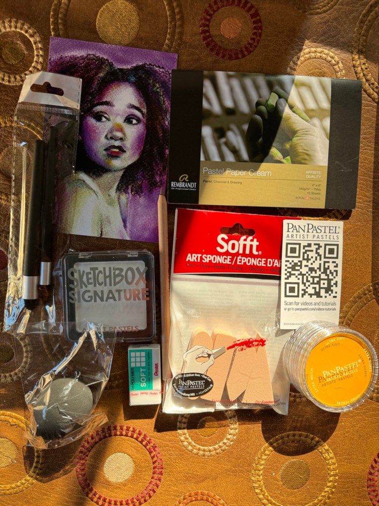 Finally, for the first half of 2025, the monthly box for June contained pastels. I may have mentioned before that I hadn’t used pastels since high school, and have fallen in love with them now.