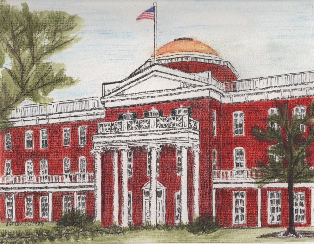 The second rendering wasn’t quickly done, and as it says in the caption, it is The Rotunda at Longwood University in FarmVille, VA. We will mat and frame it. My husband cuts the mats and makes the frames out of hardwood – not something you can find in Michael’s, Hobby Lobby, or some other framing place.